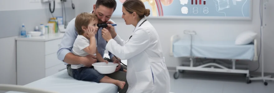 Vous vous demandez quand reconsulter après une otite compliquée de vomissements ? Il est généralement conseillé de prévoir une visite de contrôle 2 à 4 semaines après l’épisode aigu, surtout chez les enfants de moins de 2 ans ou en cas d’otite récidivante. Ce suivi permet de vérifier la guérison otoscopique, de dépister une éventuelle otite séreuse chronique et d’évaluer l’audition, notamment avant l’entrée en maternelle. En cas d’otites à répétition, l’ORL pourra discuter des mesures préventives, voire de la pose d’aérateurs transtympaniques pour améliorer la ventilation de l’oreille moyenne.